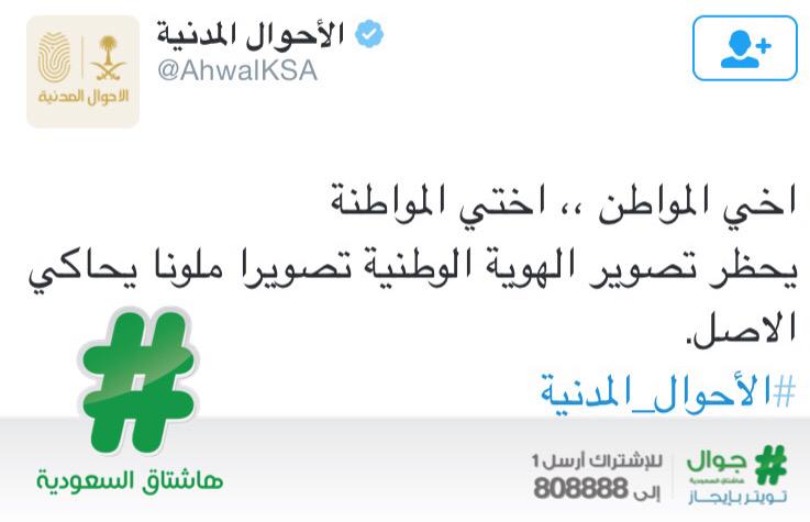 هاشتاق السعودية On Twitter الأحوال المدنية تشدد على منع إعادة تصوير الهوية الوطنية بالألوان Http T Co I0kmyup3zh