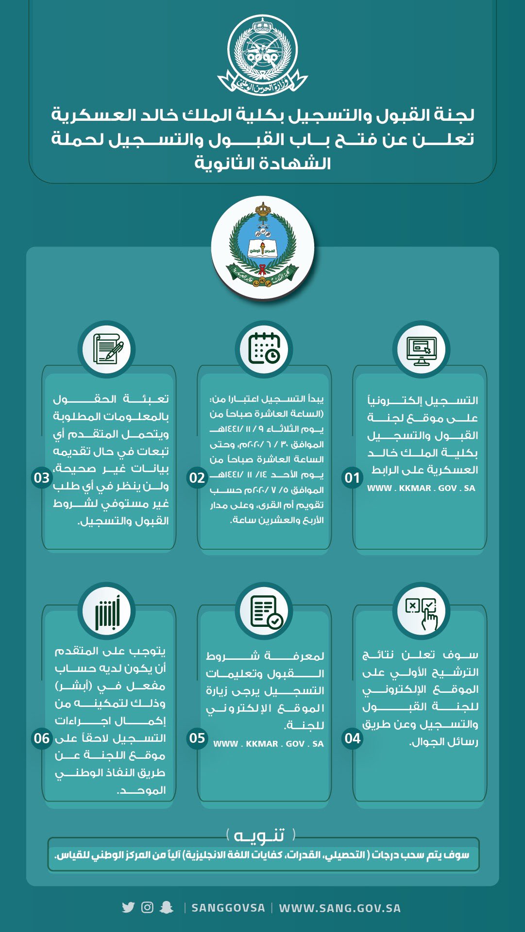 رابط تقديم الحرس الوطني 1440 عبر مواقع وزارة الحرس الوطني التالي. وظائف الحرس الوطني 1440. قبل الحديث عن أهم مميزات كلية الملك خالد العسكرية للجامعيين 1442 في المملكة العربية السعودية دعنا نتحدث في البداية عن قرار الحرس الوطني السعودي بشأن فتح باب التسجيل وذلك بشروط وضوابط معينة كشفت. موعد تقديم الحرس الوطني.
